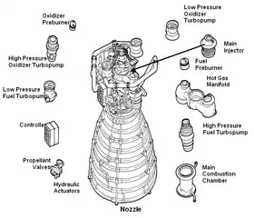 Principaux composants d'un SSME.