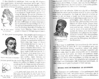 La terminologie de ses descriptions peut laisser supposer un jugement de valeur. « L'angle facial ne dépasse guère 70 à 75° » chez les Noirs. On remarquera que cette méthode consiste à retrouver par des moyens différents la description peu flatteuse des Africains fournie dans les Prolégomènes à une histoire universelle (Muqaddima) par Ibn Khaldoun.[non neutre]