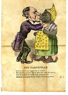 Affiche titrée « Les deux programmes » issue d'une série d'affiches racistes attaquant les candidats républicains radicaux souhaitant donner le droit de vote aux noirs américains et imprimées durant la campagne électorale du gouverneur de Pennsylvanie en 1866. Sur cette affiche le programme du candidat démocrate Hiester Clymer est dite « Pour l'homme blanc », représenté par un jeune homme blanc idéalisé, par opposition à celui du candidat républicain dite « pour le nègre », sous le portrait stéréotypé d'un homme noir. Sous les portraits, on peut lire « Lisez les programmes : le congrès dit : « les nègres doivent voter, ou les États seront punis ». Au-dessus des portraits, on peut lire « Tous les radicaux du congrès ont voté pour le droit de vote aux nègres. [Le représentant de la Pennsylvanie Thaddeus] Stevens, Forney [John W. Forney, éditeur du Philadelphia Press] et [Le chef du Parti républicain Simon] Cameron sont pour le droit de vote des nègres ; ils sont tous candidats pour le sénat des États-Unis. Aucun journal radical ne s'oppose au droit de vote pour les nègres. Geary a dit dans un discours à Harrisburg, le , « Il ne peut y avoir aucune objection possible au vote des nègres ».