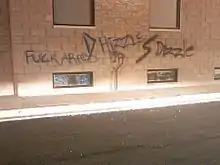 Une église assyrienne vandalisée à Detroit (2007). Les Assyriens, bien que non Arabes et majoritairement chrétiens, sont souvent discriminés aux États-Unis pour leur origine moyen-orientale[67].