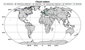 En 2015, il existe différents réseaux de tels radars. La National Oceanic and Atmospheric Administration (NOAA) a conçu le radar vertical millimétrique ARM Cloud et l'a implanté à différents sites du programme du rayonnement atmosphérique du département de l'Énergie des États-Unis[6]. Les radars fonctionnent en continu sur des sites en Oklahoma, en Alaska et dans l'ouest de l'océan Pacifique. Ils sont conçus pour fonctionner automatiquement pendant au moins dix ans, avec une supervision minimale, à une fréquence de 35 et 94 GHz.