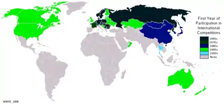 Le premier championnat européen a eu lieu en 1961 à Stockholm en Suède. Quatre compétitions internationales ont eu lieu en Europe dans les années 1960, et trois autres dans les années 1970.