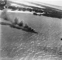 Le HMAS Maroubra coule après avoir été attaqué au large de Millingimbi le .
