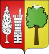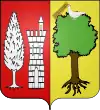 Parti ; au 1er, de gueules à la tour d'argent, crénelée de cinq pièces, sommée à senestre d'une guérite d'argent et adextrée d'un cyprès d'or ; au 2e, d'or au pin au naturel, sommé d'une colombe d'argent.[15]  |