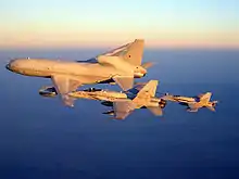 Cette méthode est particulièrement utilisée dans l'Aéronavale. L'US Navy utilise comme ravitailleurs des versions de différents avions embarqués, par ordre chronologique, des Douglas A-4 Skyhawk, premier avion à remplir ce rôle[82], des Douglas A-3 Skywarrior[83], et des Grumman A-6 Intruder[84], des Lockheed S-3 Viking[85], des Boeing F/A-18E/F Super Hornet[86]. Dans l'aéronavale française, ce rôle est longtemps tenu par les Dassault Super-Étendard. Un appareil dans la configuration ravitailleur, surnommée « nounou », est toujours disponible sur le pont du porte-avions Clemenceau et du Foch[87]. Cette mission est reprise par le Rafale M[88].