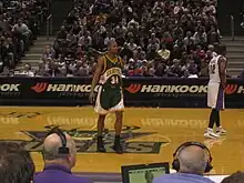 Lors de la saison 2003-2004, il manque les 25 premières rencontres de la saison à cause d'une opération à la cheville droite effectuée le 1er novembre[18]. Pour son retour, il permet à la franchise de Seattle d'améliorer son bilan qui est alors de 12 victoires pour 13 défaites[18]. À la fin du mois de , il inscrit 24 points en seulement 23 minutes de jeu pour un succès 116-90 de son équipe contre les Suns de Phoenix[18]. Début , il permet à son équipe de remporter un match contre Portland après qu'elle a été menée de 23 points[19]. Ray Allen inscrit 42 points au cours de la partie dont 20 dans le dernier quart temps de la rencontre[19]. Seattle l'emporte ensuite 119-108 après prolongation[19].