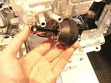 Le système de dépollution par recirculation des gaz d'échappement est constitué d'une conduite permettant de faire transiter une partie des gaz d'échappement vers l'admission, assortie d'un échangeur thermique destiné à refroidir les gaz brûlés[alpha 2] et d'une vanne, appelée communément vanne EGR, qui vient régler le débit de gaz brûlés. Cette vanne peut être pilotée par le calculateur de contrôle moteur.