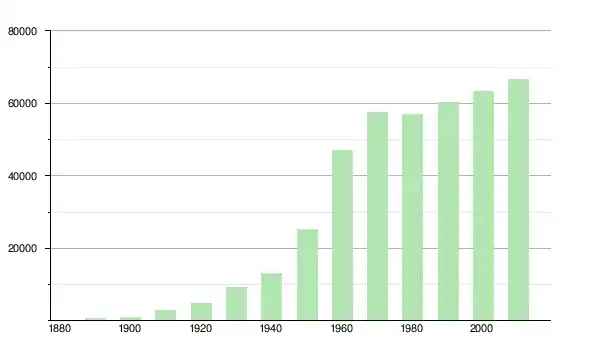 | 1960 | 46 986 | ▲ +86,26 % | |