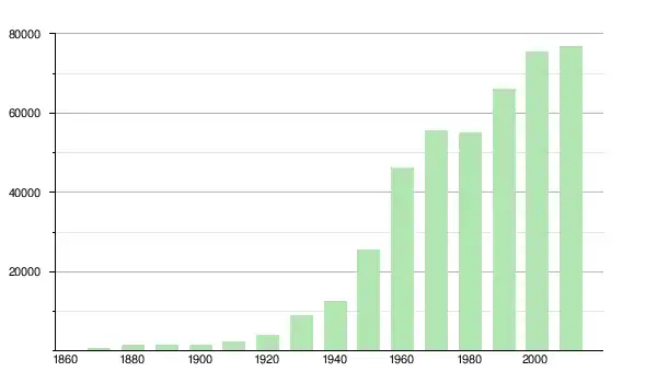 | 1960 | 46 290 | ▲ +81,22 % | |