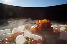 En informatique, la glace carbonique peut être utilisée notamment pour refroidir efficacement les composants d'un ordinateur, la plupart du temps le CPU et/ou le GPU. Sous forme de petits bâtonnets ou de glaçons, la glace carbonique est introduite dans un godet placé sur le composant à refroidir[2]. Quelques centimètres d'un liquide sont souvent rajoutés au fond du godet afin d'augmenter la surface de contact permettant le transfert thermique, ce liquide doit avoir une température de solidification inférieure à −78,9 °C, afin qu'il ne gèle pas, comme l'acétone qui gèle à une température de −95 °C. Le composant est alors refroidi par transfert thermique, et la glace carbonique se sublime à l'intérieur du godet.