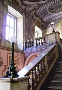 La cour du palais, de dimensions imposantes, a sur son flanc gauche la caserne des gardes royaux et la chapelle palatine (1749). Un majestueux escalier monumental (1741) conduit depuis le vestibule au premier étage, où se trouve l'appartement de Caroline Bonaparte.