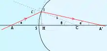 | Relation de conjugaison avec origine au sommet[2],[3],[4] | |