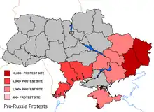 En novembre 2013, alors qu'un accord d'association doit être signé entre l'UE et l'Ukraine, la Russie essaie de faire pression sur Kiev pour la faire changer d'avis, notamment en restreignant certains produits, en revoyant les prix du gaz et en envisageant d'imposer aux citoyens ukrainiens un passeport étranger. Moscou craint en effet que cette union se fasse à son désintérêt, alors que Vladimir Poutine ambitionne en même temps un rapprochement avec les anciennes républiques soviétiques. De l'avis de l'analyste politique Vladimir Fessenko : « en mettant ainsi la pression, la Russie ne fait que pousser l'Ukraine dans les bras de l'Europe »[17]. Le 21 , l'Ukraine décide finalement, en raison des pressions russes[18], de refuser l'accord avec l'Union européenne et de « relance[r] un dialogue actif avec Moscou »[19]. Ce revirement entraîne d'importantes manifestations pro-européennes à Kiev rassemblant au moins 100 000 personnes, l'occupation de la place Maidan et de la mairie de Kiev, avec comme mot d'ordre la démission du président Viktor Ianoukovytch[20].