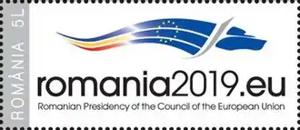 Timbre célébrant la présidence roumaine du Conseil de l'UE en 2019.