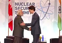 Les relations indo-canadiennes se sont détériorées à la suite de l'essai nucléaire du Bouddha souriant en , lorsque le gouvernement canadien a mis fin à la coopération nucléaire bilatérale avec l'Inde et le Pakistan en 1976 après avoir affirmé que la matière fissile utilisée pour construire le premier dispositif nucléaire indien provenait du réacteur de recherche nucléaire CIRUS fourni par le Canada. Par la suite, le Canada a décidé de ne s'engager dans la coopération nucléaire qu'avec les pays qui ont signé le Traité sur la non-prolifération des armes nucléaires (TNP) et le Traité d'interdiction complète des essais nucléaires (TICE), et qui ont institué des garanties intégrales sur leurs programmes d'énergie nucléaire sous la supervision de l'Agence internationale de l'énergie atomique (AIEA). L'Inde et le Pakistan sont deux pays qui ont tous deux refusé de signer le TNP et ont voté contre les résolutions de l'Assemblée générale des Nations unies qui, selon eux, violent le droit souverain de leur pays de choisir de signer ou non ces traités. Début , le ministre des Affaires étrangères Inder Kumar Gujral réitère l'opposition de l'Inde au traité, en déclarant que « l'Inde est favorable à toute mesure visant à détruire les armes nucléaires, mais considère que le traité dans sa forme actuelle n'est pas complet et n'interdit que certains types d'essais ». À l'époque, le Canada a constamment refusé de s'engager dans une coopération nucléaire avec l'Inde et le Pakistan tant que ces deux pays ne signeraient pas le traité, mettant ainsi fin pour l'instant à sa collaboration nucléaire avec l'Inde, et portant gravement atteinte aux relations entre les deux nations. Cependant, en 2010, la signature de l'accord de coopération nucléaire (ACN) entre les deux pays marque le début d'une nouvelle ère d'engagement. Un accord de suivi est signé en 2015 pour fournir 3 000 tonnes de concentré d'uranium à l'Inde dans le cadre d'un contrat de cinq ans[7].
