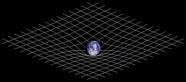 La relativité générale est fondée sur des concepts radicalement différents de ceux de la gravitation newtonienne. Elle énonce notamment que la gravitation n'est pas une force, mais la manifestation de la courbure de l'espace (en fait de l'espace-temps), courbure elle-même produite par la distribution de l'énergie, sous forme de masse ou d'énergie cinétique, qui diffère suivant le référentiel de l'observateur[note 2]. Cette théorie relativiste de la gravitation prédit des effets absents de la théorie newtonienne mais vérifiés, comme l'expansion de l'Univers, les ondes gravitationnelles et les trous noirs. Elle ne permet pas de déterminer certaines constantes ou certains aspects de l'univers (notamment son évolution, s'il est fini ou non, etc.) : des observations sont nécessaires pour préciser des paramètres ou faire des choix entre plusieurs possibilités laissées par la théorie.