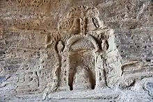 La religion nabatéenne est une ancienne forme de mythologie arabe pratiquée dans le royaume nabatéen, une ancienne nation arabe qui était bien établie au IIIe siècle av. J.-C. et qui a duré jusqu'à l'annexion romaine en 106 de notre ère[1]. Les Nabatéens étaient polythéistes et vénéraient une grande variété de dieux locaux ainsi que Baalshamin, Isis et des dieux gréco-romains tels que Tyché et Dionysos[1]. Ils étaient surtout aniconiques et préféraient décorer leurs lieux sacrés avec des motifs géométriques. Une grande partie des connaissances sur le mobilier funéraire des Nabatéens a été perdue en raison du pillage intensif au cours de l'histoire. Ils faisaient des sacrifices à leurs dieux, accomplissaient d'autres rituels et croyaient en une vie après la mort.