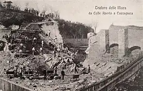 La seule partie des murailles de la ville haute à avoir été complètement démolie est l'extrémité ouest du rempart de San Pietro qui se trouvait à l'emplacement de l'actuelle rue Costantino Beltrami. À cet endroit, un tunnel a été réalisé entre 1907 et 1908 pour relier directement la ville haute au quartier de Castagneta et aux collines environnantes.