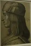![]() | 24 | Portrait d'homme : Giacomo di Giovanni d'Antonio Loiani[LLB 28],[LLB 29] | Maître des portraits Baroncelli | vers 1489-1499 | pointe d'argent sur papier préparé gris bleuté. Doublé | H. 14,1 cm ; l. 9,9 cm | 10 DR recto | département des Arts graphiques, collection Edmond de Rothschild, donation d'Edmond de Rothschild, 1935 | |