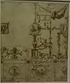 ![]() | 61 | Académie d'homme debout, main droite sur la tête[LLB 70] | Peter Vischer dit le Jeune | début du XVIe siècle | plume et encore noire, incisions à la pointe de métal | H. 32 cm ; l. 21,2 cm | INV 19053 recto | département des Arts graphiques, provenant d'un album qui aurait appartenu à Peter Vischer le Jeune | |