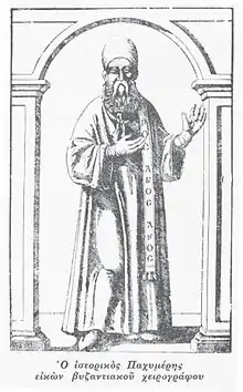Georges Pachymère (grec : Γεώργιος Παχυμέρης/Georgios Pachymérès; né vers 1242, mort vers 1310) fut un homme d’Église, juge et professeur de droit, ainsi qu’un écrivain et historien. Né en Bithynie, il retourna à Constantinople après la reconquête et étudia le droit sous la direction de Georges Akropolite. Entré dans les ordres, il fut reçu diacre et enseigna à partir de 1277 avant d’accéder aux fonctions soit ecclésiastiques d’avocat des droits et des intérêts de l’Église, soit civiles de juge. Grâce à ses fonctions officielles, il eut accès à de nombreuses sources qui lui permirent d’écrire l’histoire de l’empire depuis la naissance d’Andronic II en 1259 jusqu’à la retraite du dernier aventurier catalan en 1308. Il se passionna également pour les questions religieuses qui déchiraient la société de l’époque; très attaché à la tradition grecque, il s’opposa fermement à l’Union avec l’Église de Rome[61],[62].