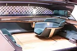 Cette voiture électrique connectée et autonome (de niveau 4 sur 5[11]) est équipée d'une grande porte latérale à ouverture coulissante automatique et d'un partie haute vitrée à ouverture en papillon, de 4 roues directrices carénées, de suspensions actives capables d'abaisser ou de relever la carrosserie de plusieurs centimètres lorsque le véhicule est arrêté ou en mouvement[12], et de vitres sans tain et toit vitré panoramique[13]...