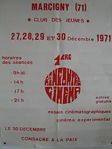 Dans le cadre du Club des Jeunes de Marcigny, un petit groupe de bénévoles organise une 1re rencontre en 1971, entre Noël et jour de l'An, sur le thème Essais cinématographiques - Cinéma expérimental, salle du Foyer à Marcigny, ce qui constitue l’acte de naissance des rencontres[5],[7].