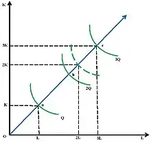 et représentent des facteurs de production (typiquement capital et travail), et correspond au facteur d'échelle.