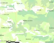 Au niveau départemental, la commune est située à 10 km de Rennes-le-Château, 12 km d'Espéraza, 10 km de Couiza, 24 km de Limoux et 50 km de Carcassonne.