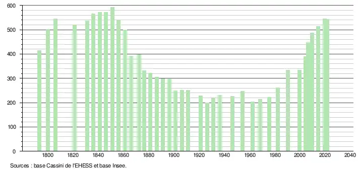 - Population municipale légale en vigueur au 1er janvier 2024, millésimée 2021, définie dans les limites territoriales en vigueur au 1er janvier 2023, date de référence statistique : 1er janvier 2021.