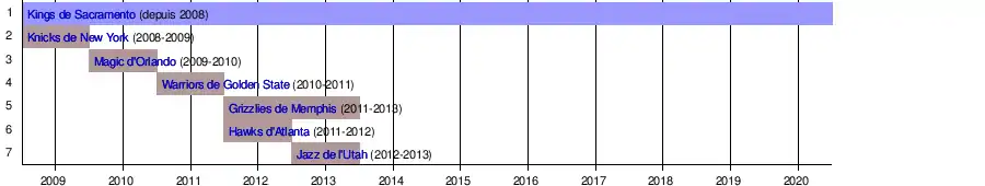 | 2017-2018 | Pacific | 1er | 29 | 21 | .580 | Demi-finale de conférence | |||