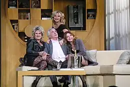 |   Une partie des comédiens lors des saluts, le 13 novembre 2015 : Laurent Spielvogel, Marie-Anne Chazel, Michel Sardou, Emma Gamet et Valérie Vogt | |