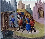 L'art de l'enluminure connaît au XVe siècle un grand bouleversement : Le paysage se fait plus nettement naturaliste, les arbres stylisés et décoratifs du gothique international cèdent la place à de "vrais" arbres ; les cathédrales qui se découpent en arrière-fond des miniatures sont parfois clairement identifiables, et les ponts apparaissent normalement représentés[2]. Jean Fouquet est le principal représentant de cette évolution. En 1458, il est chargé - peut-être par le roi Charles VII de France lui-même - d'illustrer les Grandes Chroniques de France[3] ou, des ponts-levis peuvent être vus sur plusieurs de ses œuvres.