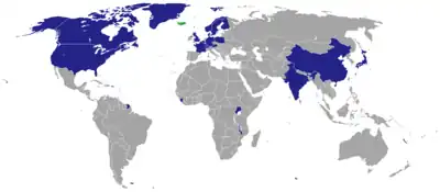 | Pays hôte | Ville hôte | Représentation | Année de fermeture | Références |