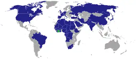 Carte des représentations diplomatiques en Côte d'Ivoire