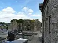 Restes d'une ancienne église paroissiale datant du XVe siècle, à l'exception de la tour reconstruite en 1754 et 1755. Après deux expertises, en 1763 puis en 1767, le conseil du roi de France décida en 1773 la démolition de l'édifice, devenu dangereux. La tour, qui avait seule subsisté, s'effondra en 1833. Le culte fut transféré en 1773 dans la chapelle des Carmes puis, en 1790, dans la collégiale Notre-Dame. Les ruines conservées dans le cimetière laissent voir un arc ogival avec tympan soutenu par un jambage créant deux ouvertures, également ogivales. Des moulures, avec gorges et colonnettes engagées, tournent autour de ces passages. Des contreforts buttent la maçonnerie. Une petite porte basse donne accès à l'escalier circulaire.