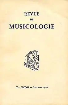 La Revue de musicologie s’installe durablement dans le paysage musicologique, paraissant avec régularité jusqu’à l’approche de la Seconde Guerre mondiale : peu après avoir inauguré une nouvelle typographie sur la couverture (1935), la Revue connaît quelques difficultés de périodicité (1937-1939) jusqu’à un arrêt total de parution en 1940 et 1941. Lors de la reprise de la publication en 1942, le titre change à nouveau: une « série spéciale », hors tomaison, voit le jour[7]. La publication prend, jusqu’en 1945, le titre de Société française de musicologie : Rapports et Communications. Un encart rose est inséré dans le numéro de 1942 : « En raison des événements survenus depuis deux ans, la Revue de musicologie ne pouvant assurer une périodicité régulière, est remplacée momentanément par le présent fascicule de Rapports et Communications, qui, selon les circonstances, sera suivi par d’autres[8]. » Un avis porté en tête du numéro de 1944 éclaire quelque peu les aléas de la Revue dans cette période : « Le numéro unique de 1944 représente à lui seul le tome XXIII de la Revue de Musicologie. Les circonstances ne nous ont pas permis de faire paraître un autre numéro pendant cette année si décisive pour la France et pour l’Europe. Sous le titre de Rapports et Communications, qui nous a été imposé pendant l’occupation allemande, nous avons réussi, malgré une périodicité irrégulière, à maintenir presque intégralement le contenu habituel de la Revue, sauf, naturellement, pour le compte-rendu des publications étrangères. Comme la plupart des revues scientifiques, nous avons accepté provisoirement cette modification de titre pour pouvoir sauvegarder l’existence de notre Société, la continuité de nos séances de travail, et la cohésion d’un groupement de spécialistes laborieusement constitué depuis un quart de siècle, dans une discipline trop négligée en France et pourtant essentielle à la culture française. Avec l’année 1945, notre revue, débarrassée de toute contrainte, encouragée par le gouvernement de la Libération, reprendra son titre de Revue de Musicologie. Elle tâchera de recouvrer une périodicité aussi régulière que le permettront les événements de la vie nationale et internationale[9]. » Le retour à un rythme régulier de parution n’est pas immédiat ; une mention portée dans les pages du tome XXVI affirme en effet : « La Revue de Musicologie, comme beaucoup d’autres revues scientifiques, subit en ce moment des retards dont nous nous excusons mais qui sont dus surtout à la situation économique générale. Pour atténuer ces retards, nous avons réuni en un seul volume la matière des fascicules prévus pour 1947. Mais nos lecteurs n’y perdront rien, bien au contraire, car le nombre de pages de l’année 1947 est très supérieur à celui de 1946[10]. » Un message de même teneur confirme l’année suivante la difficulté de retrouver la périodicité : « La Revue de Musicologie, comme beaucoup d’autres revues scientifiques, subit en ce moment des retards dont nous nous excusons mais qui sont dus surtout à la situation économique générale. Pour atténuer ces retards, nous avons, cette année encore, réunit en un tome (1948) la matière des quatre fascicules trimestriels du temps normal. Nous espérons faire paraître en fin d’année une somme de même importance (1949) et reprendre la périodicité au moins semestrielle[10]. » En 1950 encore : « Nous adoptons, avec le présent numéro, une périodicité semestrielle, en attendant de pouvoir revenir à la périodicité trimestrielle d’avant-guerre. Un second numéro pour 1950 paraîtra donc en fin d’année[11]. Jusqu’en 1953, l’espoir de revenir à une publication trimestrielle se lit en outre dans la double numérotation de chacun des volumes. »