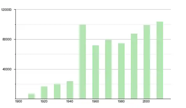 | 1950 | 99 545 | ▲ +321,05 % | |