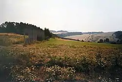 - Double clôture en grillage métallique d’environ 2,40 m de haut de part et d’autre d’un champ de mines en rase campagne.