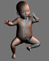 Un processus de maillage (skinning) associe chaque os du squelette à une portion de la peau de l'objet à animer, cependant une portion donnée de la peau peut être associée à plusieurs os, selon une pondération précise.