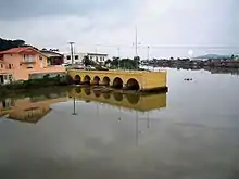 Non loin de son embouchure, on trouve les ruines de l'ancien pont, qui servait de voie de liaison avec le sud de l'État et avec le Rio Grande do Sul par le littoral. Il a été détruit par une inondation à la fin du XXe siècle.