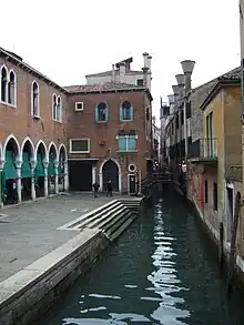 - la taverne à l'enseigne delle Spade est déjà citée en 1488 et en 1566, lorsqu'elle appartient à la famille Foscari; le pont fut érigé en bois, mais refait en fer en 1886