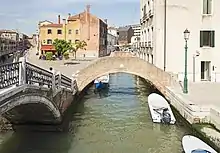 Ce rio est traversé par le : Ponte Cossetti. Martin Cuccetti acheta ici une maison vers 1873 reliant le fondamenta Cossetti au fondamenta del Pagan.