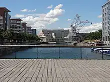Le centre se trouve sur l'emplacement d'anciens docks portuaires.