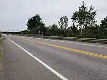Vue vers l'aval de la rivière à la Truite, à partir du pont de la route 138. | |