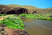 - Son parcours passe ici dans le comté de Harney, avant de rejoindre en aval le comté de Malheur. Les deux cols ou passes sont empruntés, dans l'ordre inverse, par le tronçon autoroutier 20 menant de Juntura, Malheur county à Buchanan, Harney county.