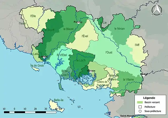 Les rivières morbihannaise forment ce que l'on nomme ailleurs des rias ou des abers. La plupart du temps, la rivière porte le nom du plus gros village situé sur ses rives (rivière d'Étel, rivière de Crac'h, etc.) ; les plus importantes portent toutefois des noms propres à part entière (Scorff, Blavet, etc.).