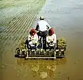 Bien que la plus grande partie de la production du riz dans le monde soit effectuée manuellement, le reste fait appel à des systèmes très mécanisés. Ainsi aux États-Unis et en Australie, semis, fumure et traitements peuvent être réalisés par avion. En Europe et au Japon, on préfère généralement des moyens terrestres, les dérives de pesticides étant faciles sur de petites parcelles et peu appréciées des populations riveraines.