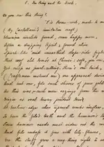 Poétesse de renom, Elizabeth Barrett est atteinte d'une sorte de paralysie et se cloître depuis le décès accidentel de son frère préféré[61]. De plus, son état est aggravé par d'importantes prescriptions d'opium et aussi l'affection despotique que lui porte son père. Les deux poètes se font une cour secrète par lettres interposées. La première missive de Browning, du , a été plutôt hardie : « J'aime (love) vos vers de tout mon cœur, chère Miss Barrett […] dans cet acte de m'adresser à vous, à vous-même, mon sentiment s'élève pleinement. Oui, c'est un fait que j'aime (love) vos vers de tout mon cœur, et aussi que je vous aime (love), vous[N 11],[8] », mais après de nombreuses réticences, Elizabeth, poussé par son ami John Kenyon, accepte que son admirateur lui rende visite, ce qui a lieu le . Désormais, il fréquente le 50 Wimpole Street presque tous les jours, couvre la chambre de la malade de fleurs et en 1846, il se décide à intervenir et organise le départ clandestin d'Elizabeth.