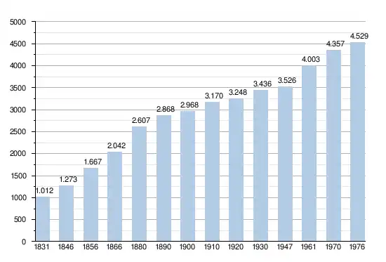 - Source: DGS , de 1831 à 1981=recensements population; à partir de 1990 = nombre d'habitants chaque 1 janvier
